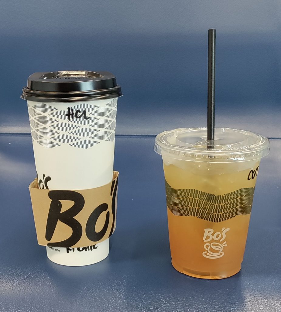 After a quick search for a shot glass for Richard and Jack, we are now relaxing with a drink. Iced citrus ginger tea for me and a caramel latte for Richard.