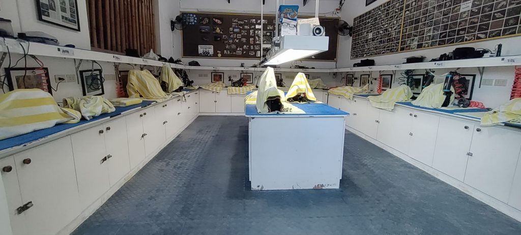 As it was raining last night, we brought our jackets up to the room to dry under the fan (everything else will dry quickly) together with our rash vests and leggings. All dry this morning. It doesn’t matter too much as we have 40kgs each weight allowance.