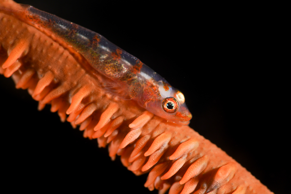 This afternoon, on the boat was us and Martin with Nanni. Third dive of the day was at Elmer’s Point where we saw the current fish! There was lots to see and take photos although sometimes it was a challenge as the critters were waving about like a farts in a thunderstorm. I saw a very brave zebra moray who was determined not to move regardless of how close I got. Richard got a lovely shot of a a goby on a wire coral.