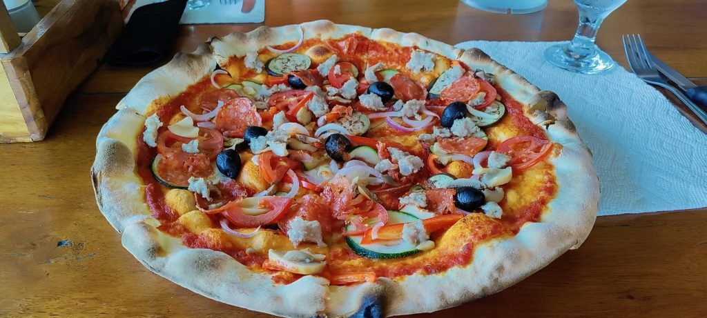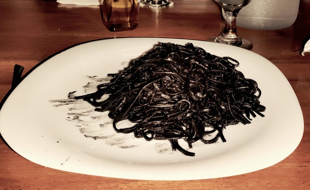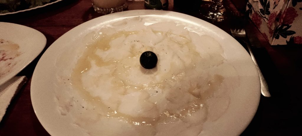 Tuna Sisig, Fried Rice, Fried Lumpia and Vegetables in coconut milk. All very nice indeed. From the bar we had Amaretto Sour, Red Horse and a Negroni.