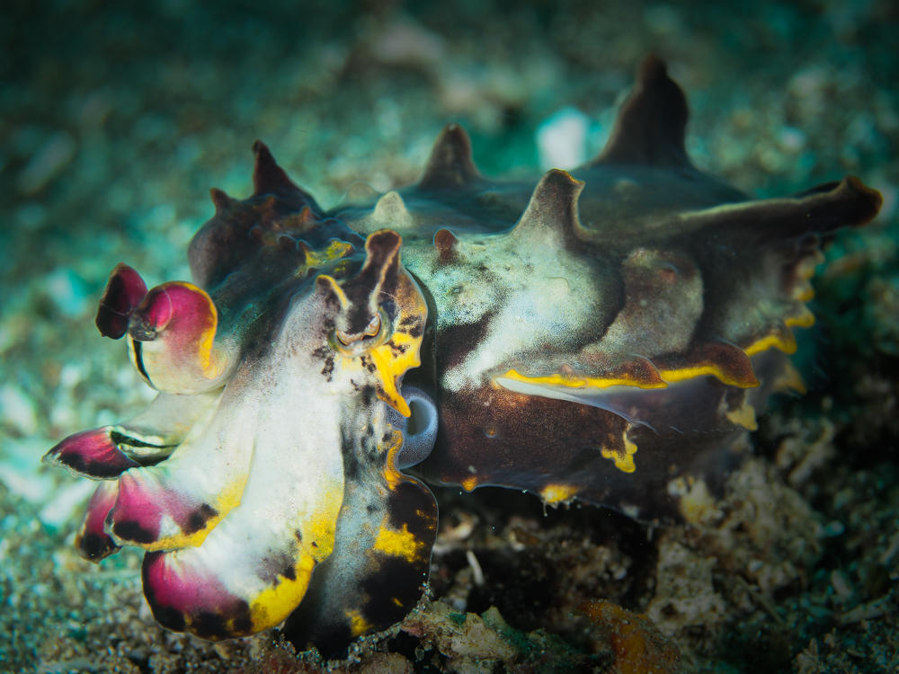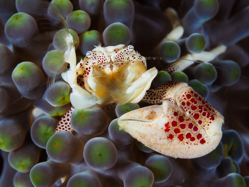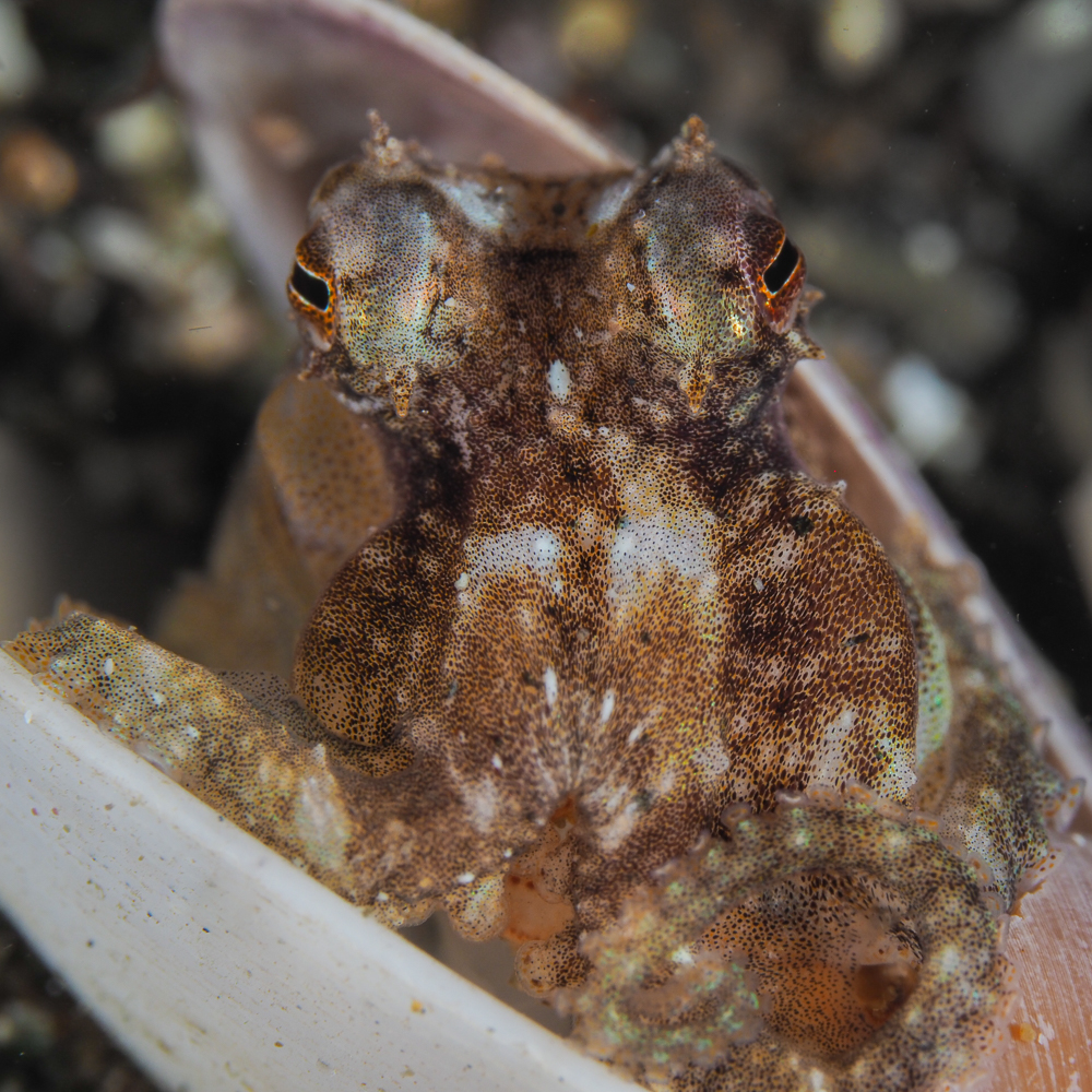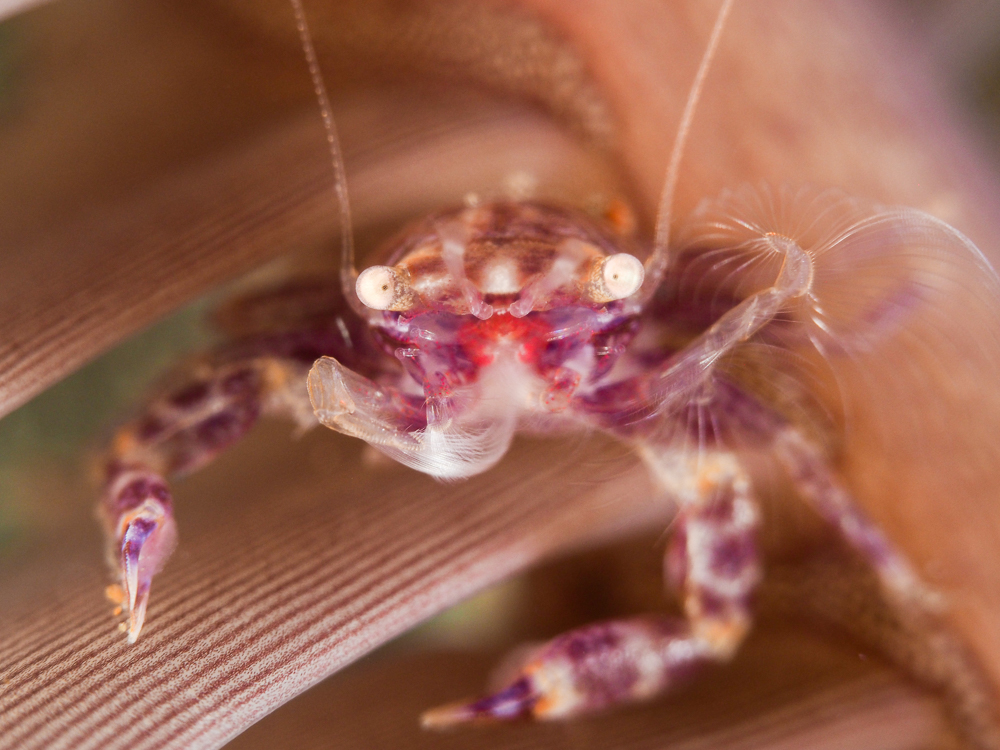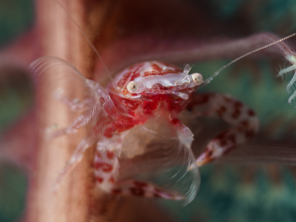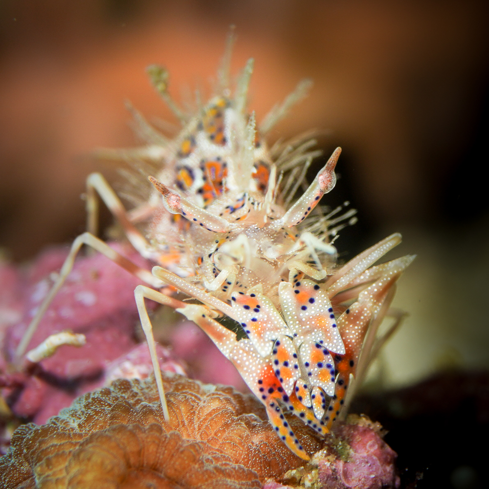 The hour is up and we drop in on the sandy slope and end up spending time with shrimps, crabs, octopus, frog fish and Lemon Blennies.