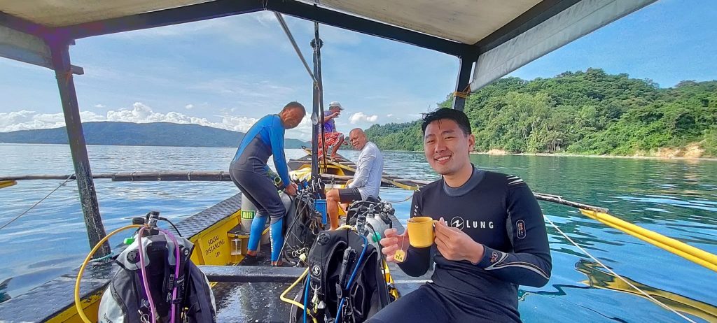 After the dive we head over to Agahuta for the second dive and work out our surface interval there dining on the usual coffee and oreos though this time we have some freshly cooked pre ripe bananas (still warm), yum, thank you Saldy for cooking them.