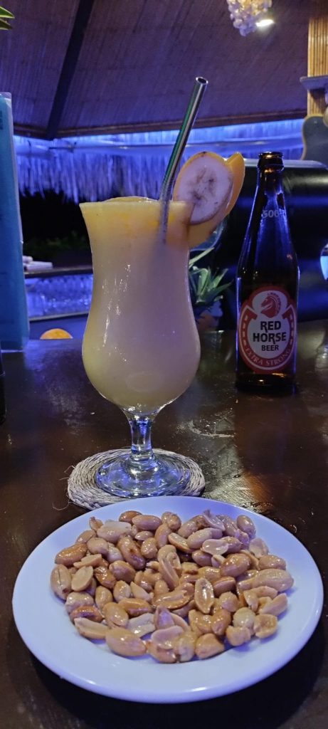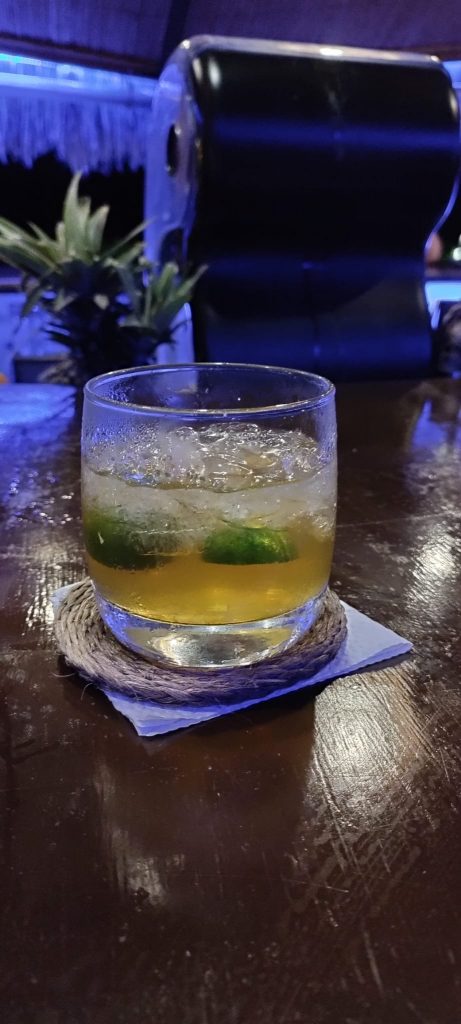 I go for my new favourite cocktail ‘Amaretto Sour’ and Jo has her favourite ‘Mango, Banana and Malibu’.